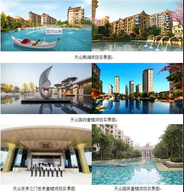 天山集团于1980年创建于河北,发展于全国,历经四十载创业历程,秉承“品质如天、诚信如山”的经营理念,以优质的产品和服务赢得了客户、合作伙伴、业内同行的尊重和赞誉。企业发展至今,已创国家建设部、省级、市级优质工程及优质样板工程数百项,并连续十年单位竣工工程优良率达到100%,先后荣获金屋奖、广厦奖、金球奖、全国用户满意工程等诸多荣誉。2010年,天山发展(控股)有限公司于香港联交所主板上市,成为河北省首家房地产行业在香港独立上市的公司。